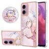 Ihania vaaleanpunaisia ja vaaleita marmoripintoja yhdistelevä kuviointi kotelossa, jolla saa suojattua Motorola Moto G04 / G24 / G24 Power puhelimet.