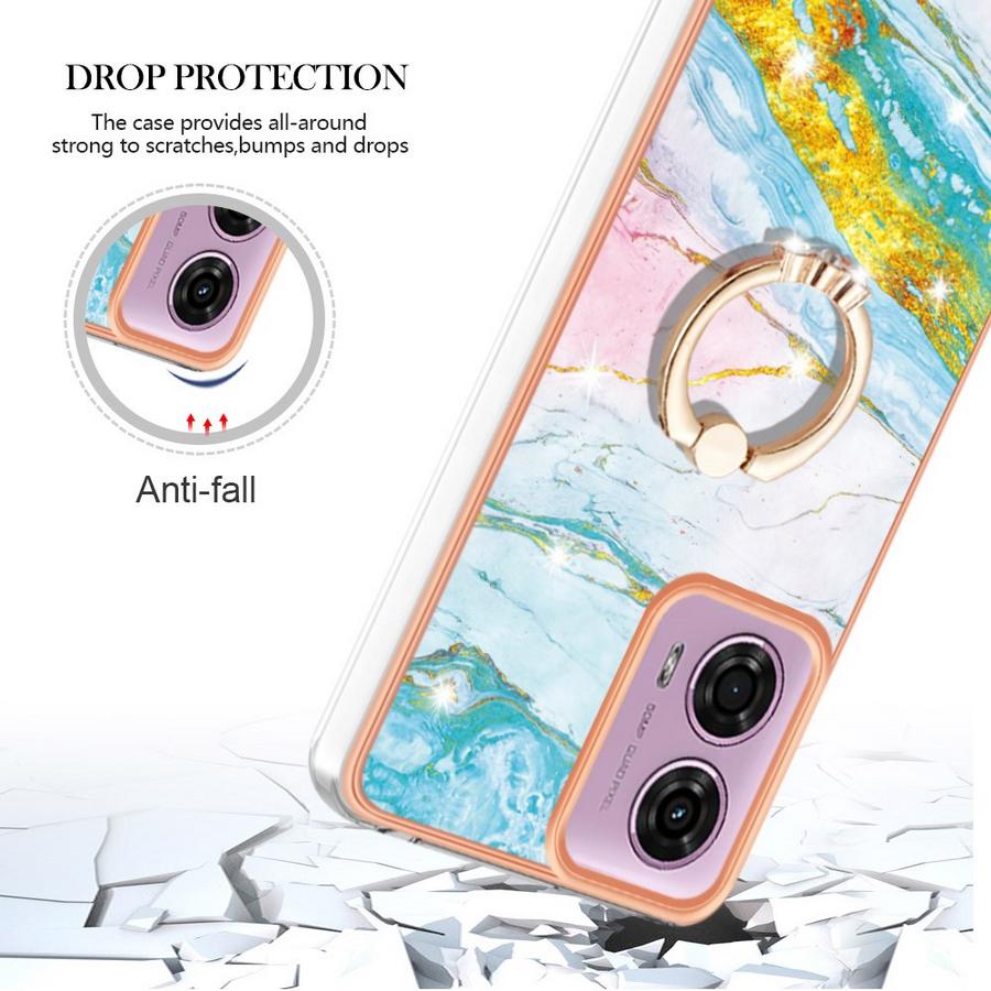 Motorola Moto G04 / G24 / G24 Power puhelimille vankka suojaus vahingoilta marmorikuvioidulla ja heleän värisellä takakuorella.