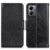 Upea mustan värinen, hillityllä tyylillä kuvioitu lompakko on suoja Motorola Moto G14 puhelimelle vahingoilta ja naarmuuntumiselta.