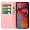 Ihanan pirteä lompakkokotelo Motorola Moto G15 / G15 Power puhelimille, pinkkiin puettu suoja rikkoutumiselta sekä pintojen naarmuilta.
