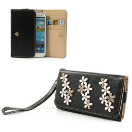 Puhelimenkuoret.fi verkkokaupasta tilaat edullisesti mustan yleismallisen kukka lompakko suojakotelon.
