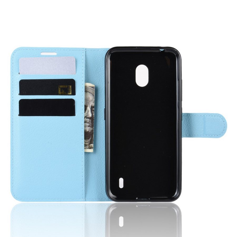 Vaaleansinisellä lompakko suojakotelolla suojaat Nokia 2.2 älypuhelimen iskuilta ja putoamisilta tyylillä.