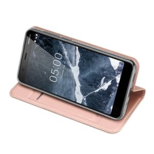 Ruusukullan värisellä kannellisella Dux Ducis suojakotelolla suojaat Nokia 5.1 (2018) älypuhelimen iskuilta, naarmuilta ja putoamisilta tyylillä.