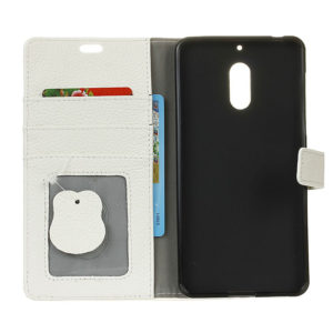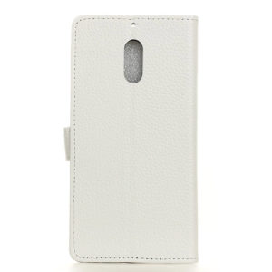 Suojaa Nokia 5 älypuhelin iskuilta, kolhuilta, naarmuilta ja putoamisilta valkoisella nahkaisella lompakkokotelolla.