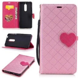 Nokia 5 Sydän Lompakko Suojakotelo Vaaleanpunainen