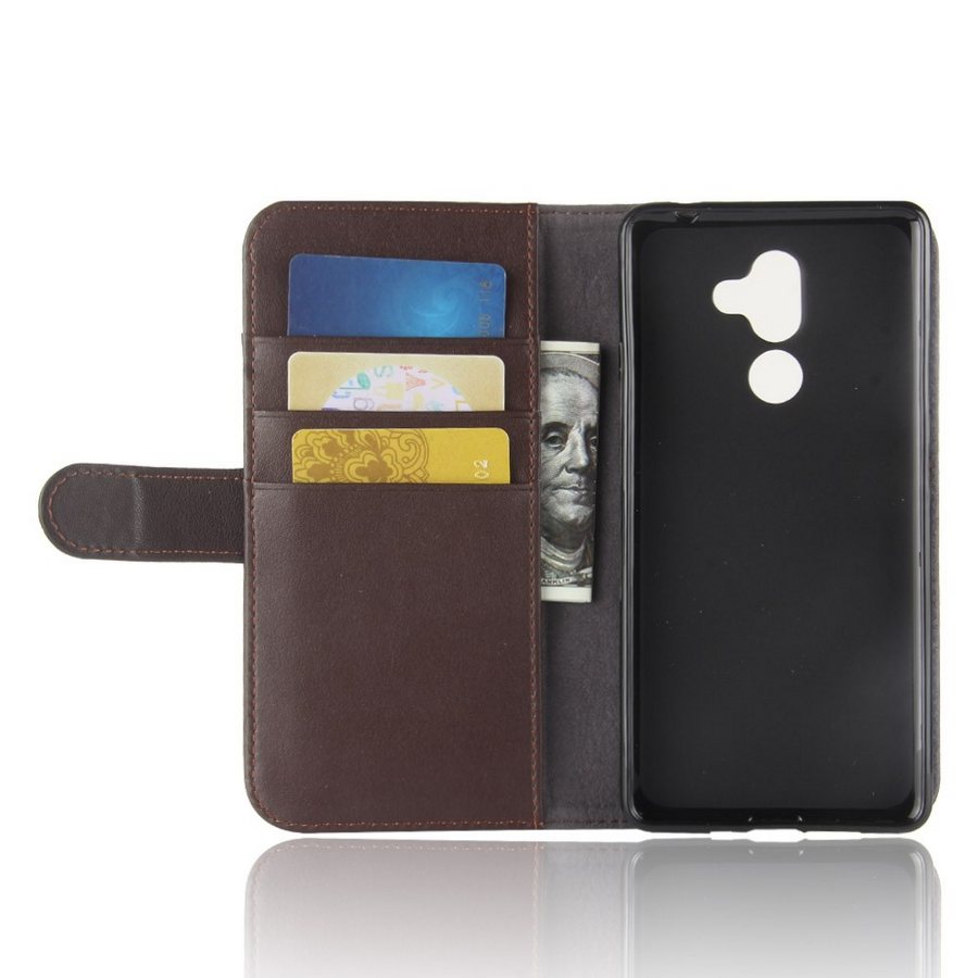 Tilaa aidosta nahasta valmistettu ruskea lompakkokotelo ja suojaat Nokia 7 Plus älypuhelimen iskuilta, naarmuilta ja putoamisilta.
