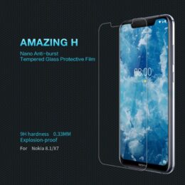 Suojaa Nokia 8.1 älypuhelimen näyttö tehokkaasti iskuilta ja naarmuílta laadukkaalla Nillkin Amazing H panssarilasi näytönsuojalla.