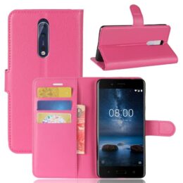 Pinkki pu-nahka lompakkokotelo auttaa suojaamaan Nokia 8 älypuhelinta kolhuilta ja naarmuilta.