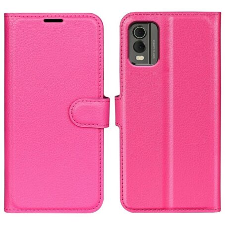 Kaunis ja käytännöllinen pinkki lompakkokotelo, jolla turvaat Nokia C32 puhelimen saamasta säröjä tai naarmuja käytössä.
