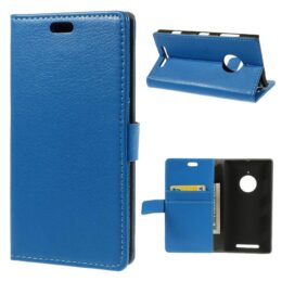 Sinisellä lompakko suojakotelolla pidät maksukortit mukana ja suojaat Nokia Lumia 830 puhelimen naarmuilta ja putoamisilta.