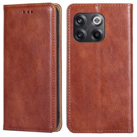 Suklaanruskean sävyinen lompakkokotelo OnePlus 10T puhelimen suojaamiseen ikäviltä vahingoilta ja pintojen naarmuuntumiselta.