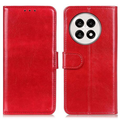 Lompakkokotelon kansissa on upeana edukseen erottuva kiiltävän punainen väritys, kattavasti suojaava malli OnePlus 13R puhelimen turvaksi.