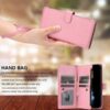 Koko lompakko kiinnittyy magneettisella läpällä ja rannehihna tuo tuen kannatteluun, kotelo kulkee siis turvallisesti matkassa ympäröiden puhelimen ja maksuvälineet.