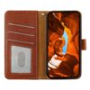 Pehmeään ruskeaan sävyyn puettu lompakkokotelo OnePlus 15 -älypuhelimen suojaamiseen kolahduksilta ja pintojen naarmuilta.
