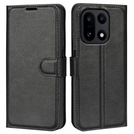 OnePlus 15 -älypuhelimelle rikkoutumiselta suojaava, käytännöllinen ja aina edustavan mustan värinen lompakkokotelo.