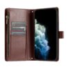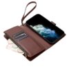 Tummaan ruskeaan sävyyn puettu lompakkokotelo OnePlus 15R -älypuhelimen suojaamiseen kolahduksilta ja pintojen naarmuilta.