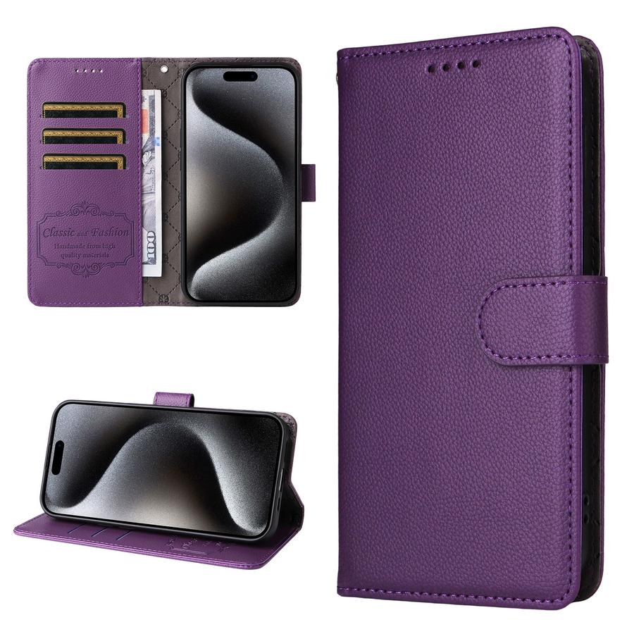 OnePlus 15R -älypuhelimelle sopiva, naarmuuntumiselta sekä vaurioilta suojaava viehättävän violettikantinen lompakkokotelo.