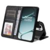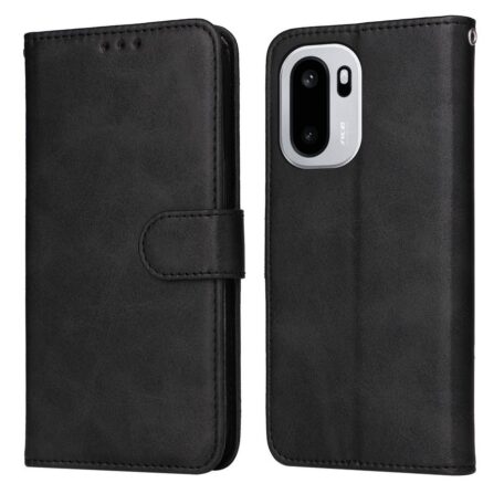 Klassinen mustakantinen lompakkokotelo on tyylikäs ja käytännöllinen rikkoutumisen suoja OnePlus 15R -älypuhelimelle.
