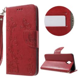 Suojaa OnePlus 3 tai OnePlus 3T älypuhelin kolhuilta ja iskuilta punaisella lompakko mallisella kukka suojakotelolla.