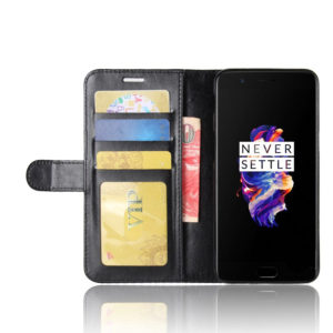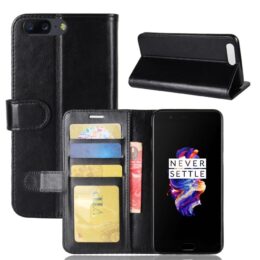 Mustalla lompakkokotelolla suojaat OnePlus 5 puhelimen iskuilta ja kolhuilta tyylillä.