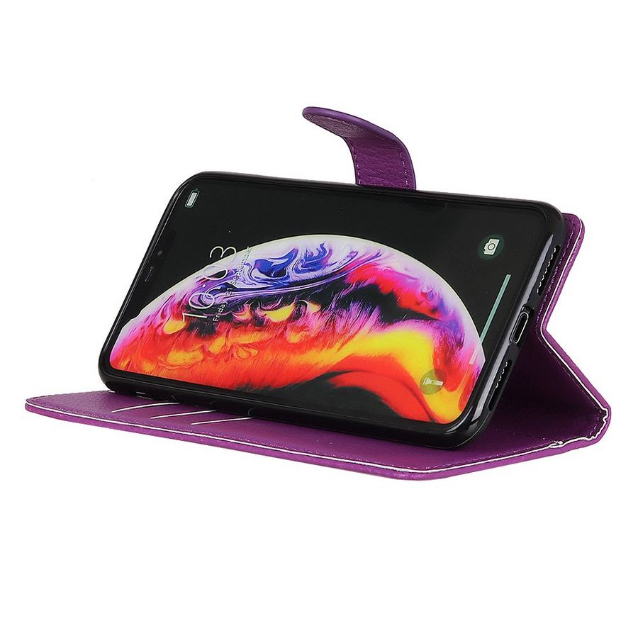 Violetissa PU-nahasta valmistetussa kotelossa säilytät kortit ja kuitit ja sillä suojaat OnePlus 7 Pro älypuhelimen iskuilta ja putoamisilta.