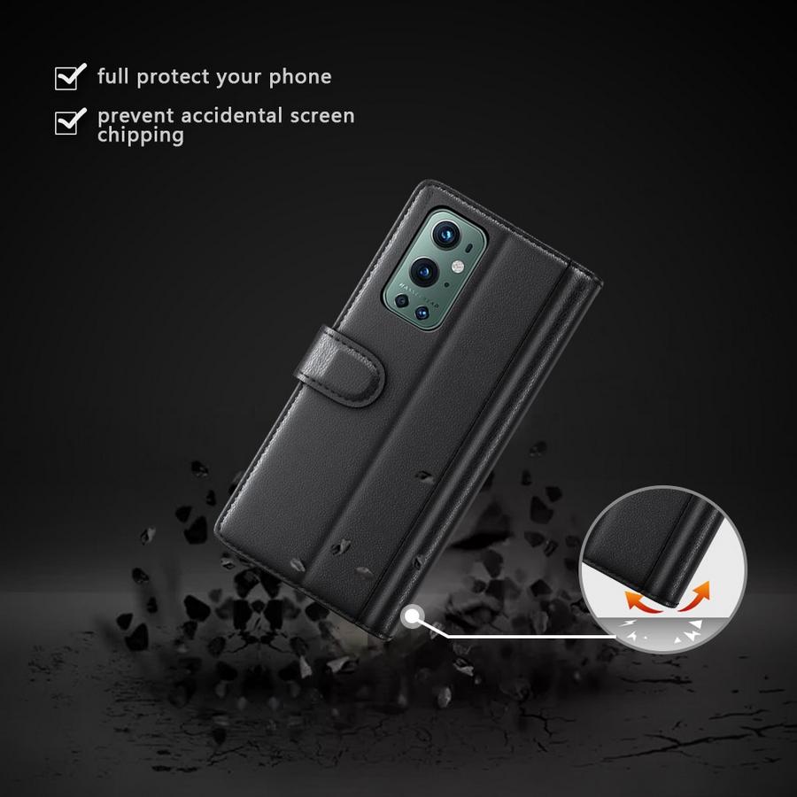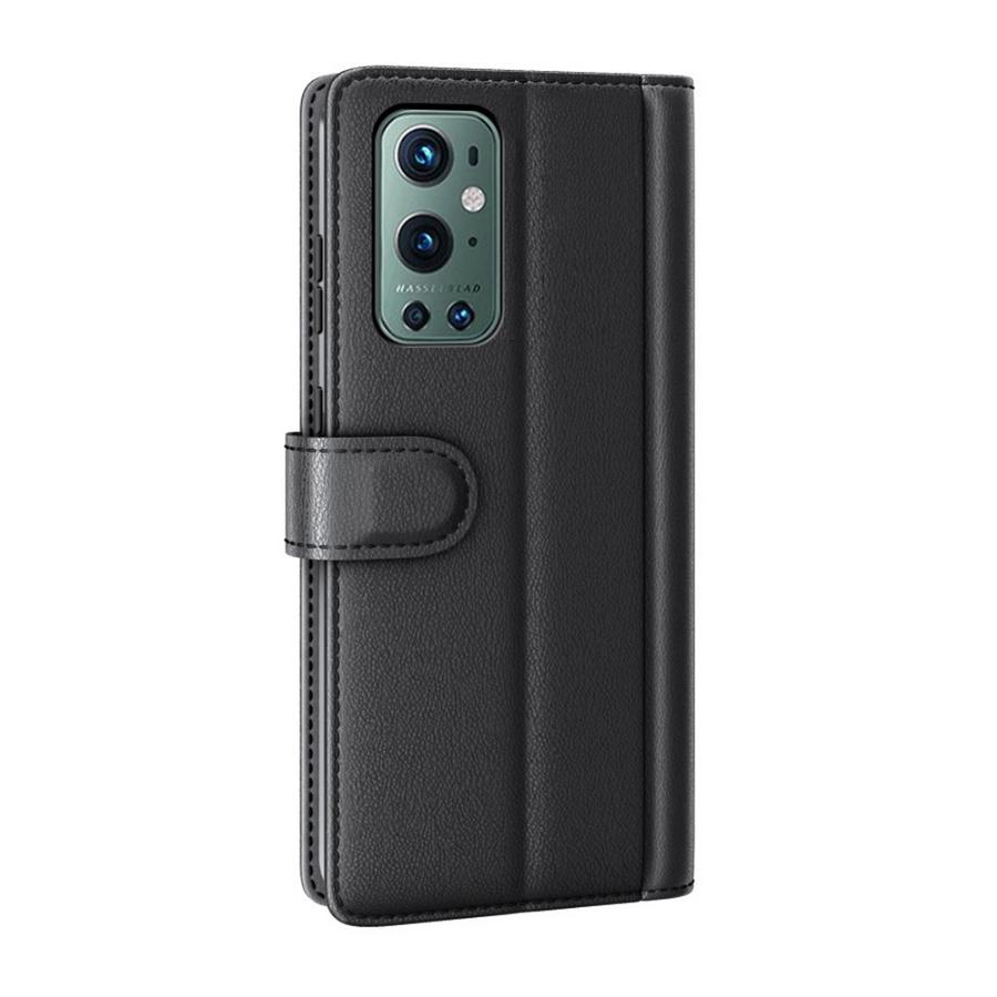 Tyylikäs nahkakotelo mustan värisin kansin on erinomainen suoja vahinkojen välttämiseen OnePlus 9 Pro puhelimelle.