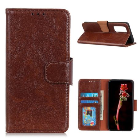 Klassisen tyylikäs kiiltäväpintainen nahkakotelo on väriltään miellyttävän ruskea ja ominaisuuksiltaan käytännöllinen suoja OnePlus 9 puhelimelle.