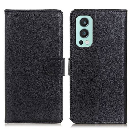 Siisti ja selkeänmallinen musta lompakkokotelo on hyvännäköinen ja tehokas suojaamaan OnePlus Nord 2 5G puhelinta särkymiseltä.