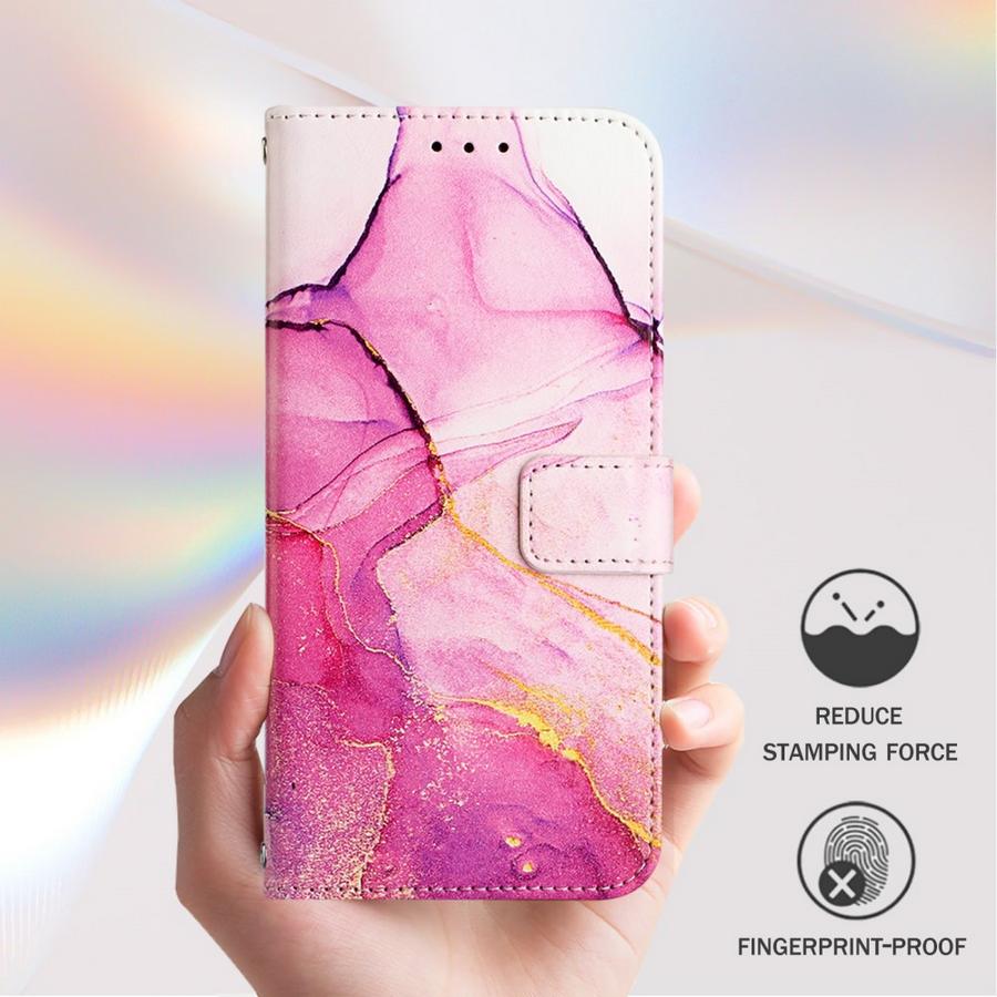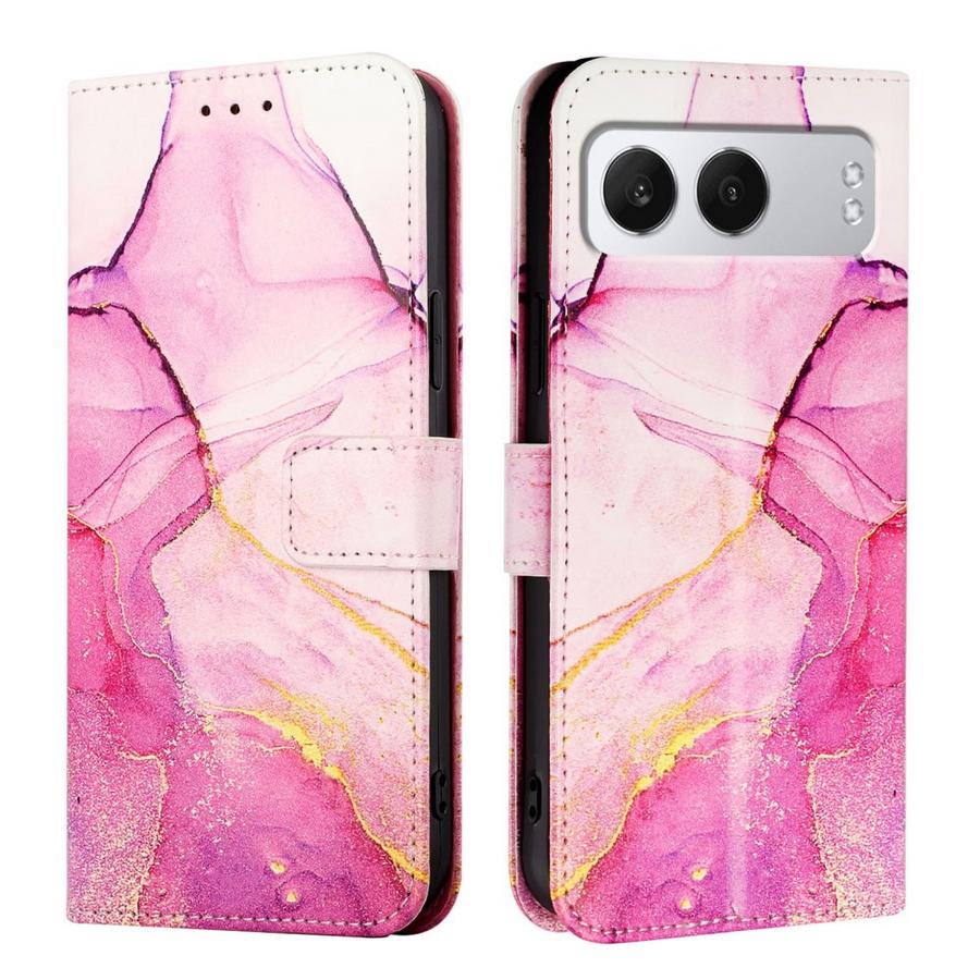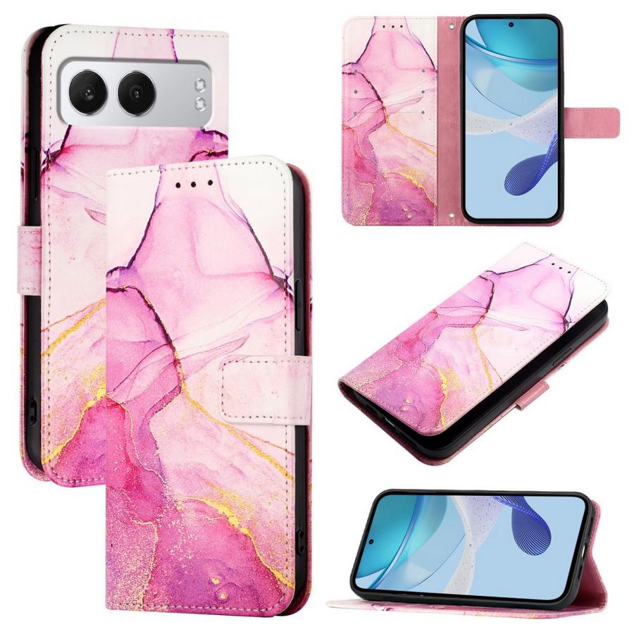 OnePlus Nord 4 5G puheimelle särkymiseltä suojaava lompakkokotelo, jota kuvioi ihastuttava pinkin sävyissä liukuva marmorointi.