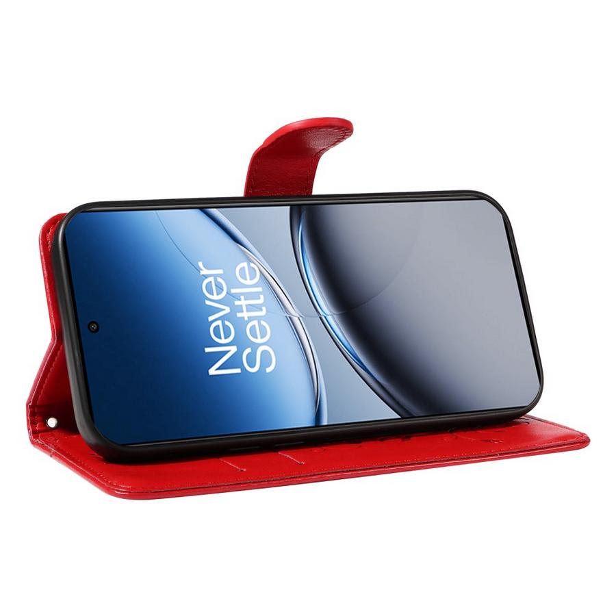 OnePlus Nord 4 5G -älypuhelimen suoja, jossa on upean punaiset kannet somistettuna kauniisti painetuilla köynnös- ja perhoskuvioilla.