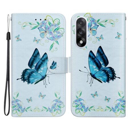 Suloinen vaaleansininen lompakkokotelo OnePlus Nord 5 5G -älypuhelimen turvaksi vahingoittumiselta, ihana somistus perhoskuvioilla.