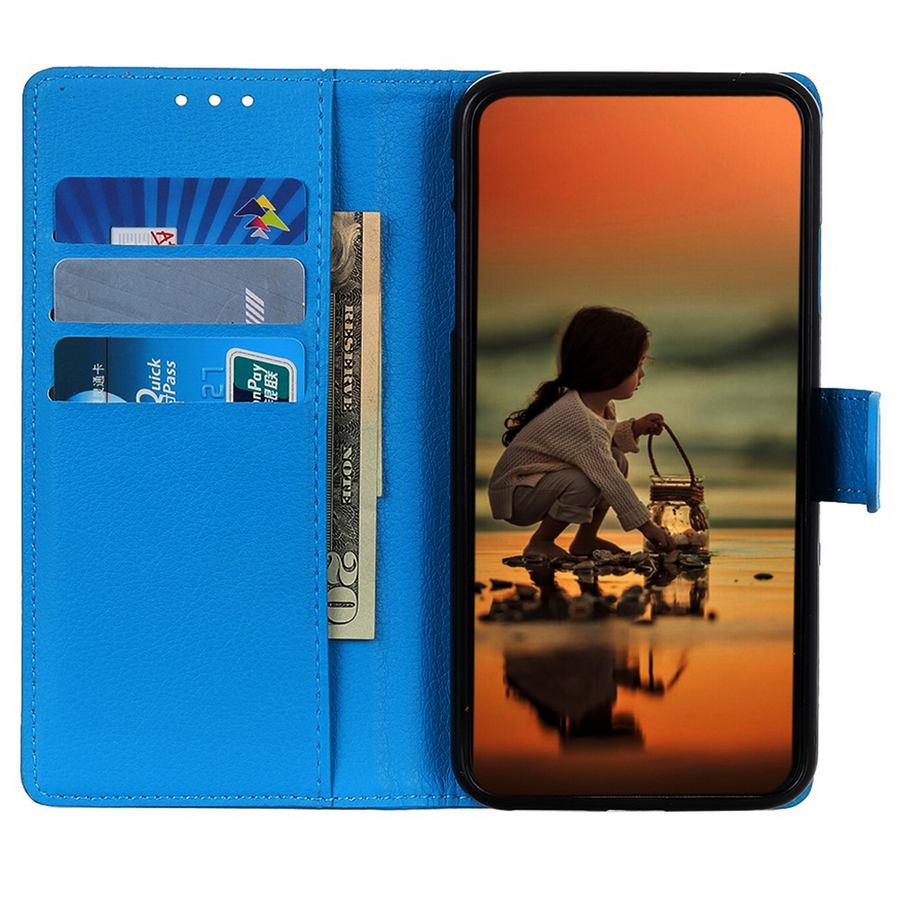 Sinisen värinen lompakkokotelo on pätevä suoja OnePlus Nord CE 2 5G puhelimelle, jotta se pysyy ehjänä ja käyttökunnossa.