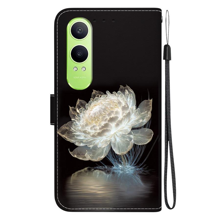OnePlus Nord CE 4 Lite 5G puhelimen suojaksi näyttävä kotelomalli, jonka mustapohjaisissa kansissa on upea suuri kukkakuvio.