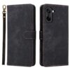 Mustassa lompakkomallisessa kotelossa OnePlus Nord CE5 5G puhelinta sekä maksuvälineitä on turvallista käyttää ja kuljettaa matkassa.