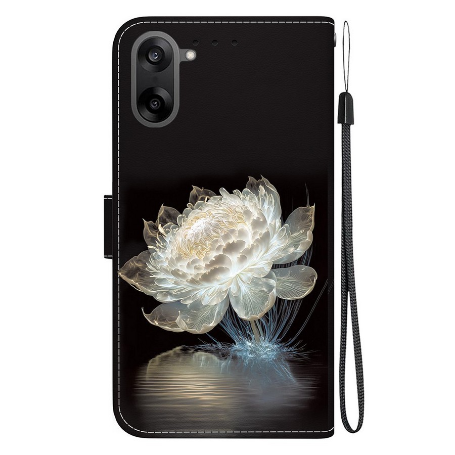 OnePlus Nord CE5 5G puhelimen suojaksi näyttävä kotelomalli, jonka mustapohjaisissa kansissa on upea suuri kukkakuvio.