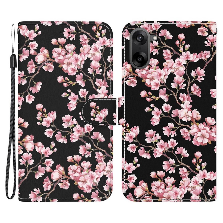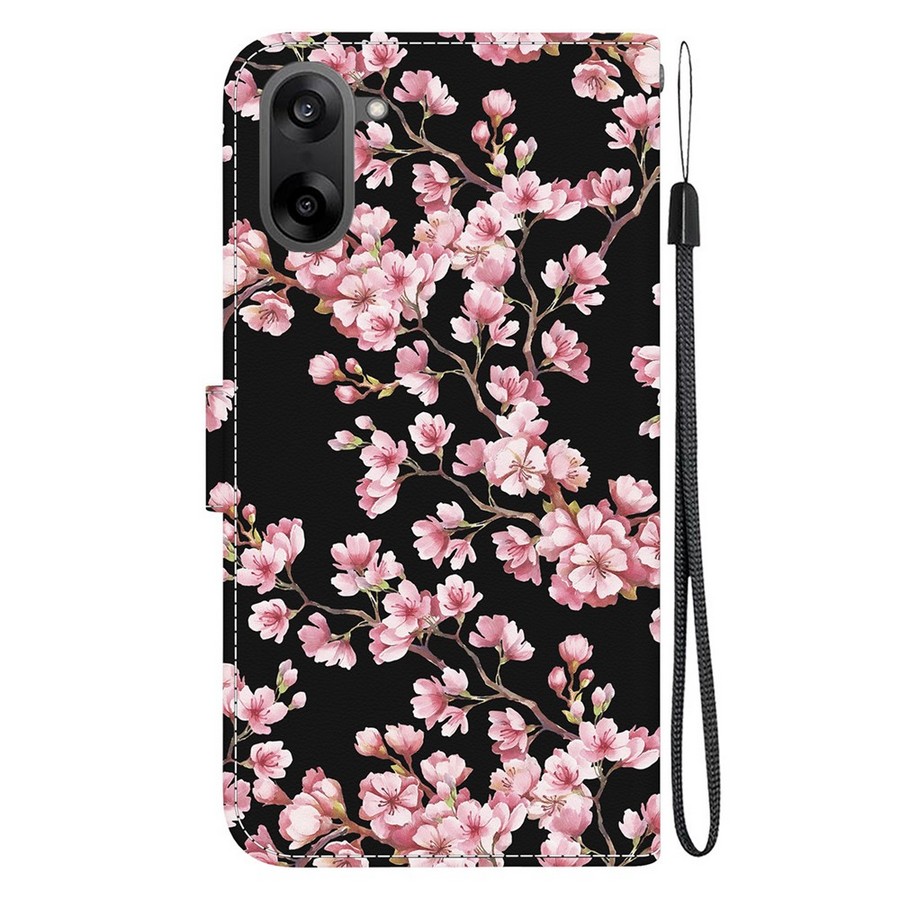 OnePlus Nord CE5 5G puhelimelle suojaus ja ihastuttava ulkoasu kotelolla, jonka tummapohjaisia kansia somistavat herkän kauniit kukkivat oksat.