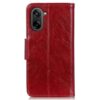 Ihastuttava ja laadukas nahkakotelo OnePlus Nord CE5 5G puhelimen turvaksi rikkoutumiselta, elegantin viininpunaisessa värityksessä.