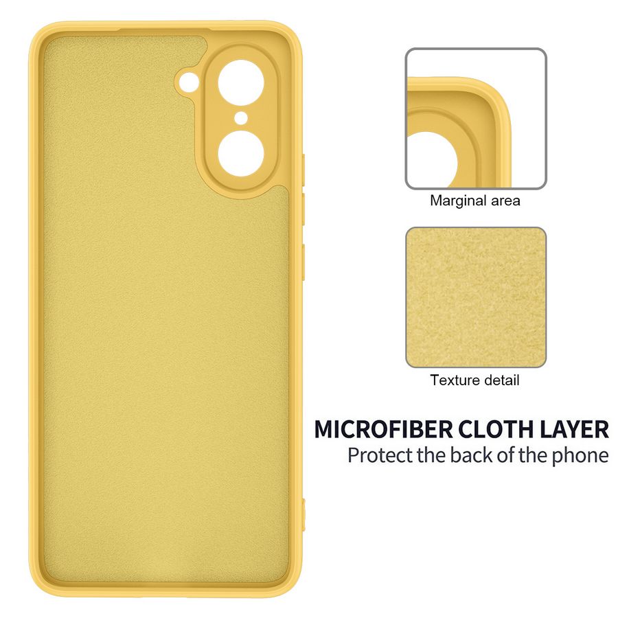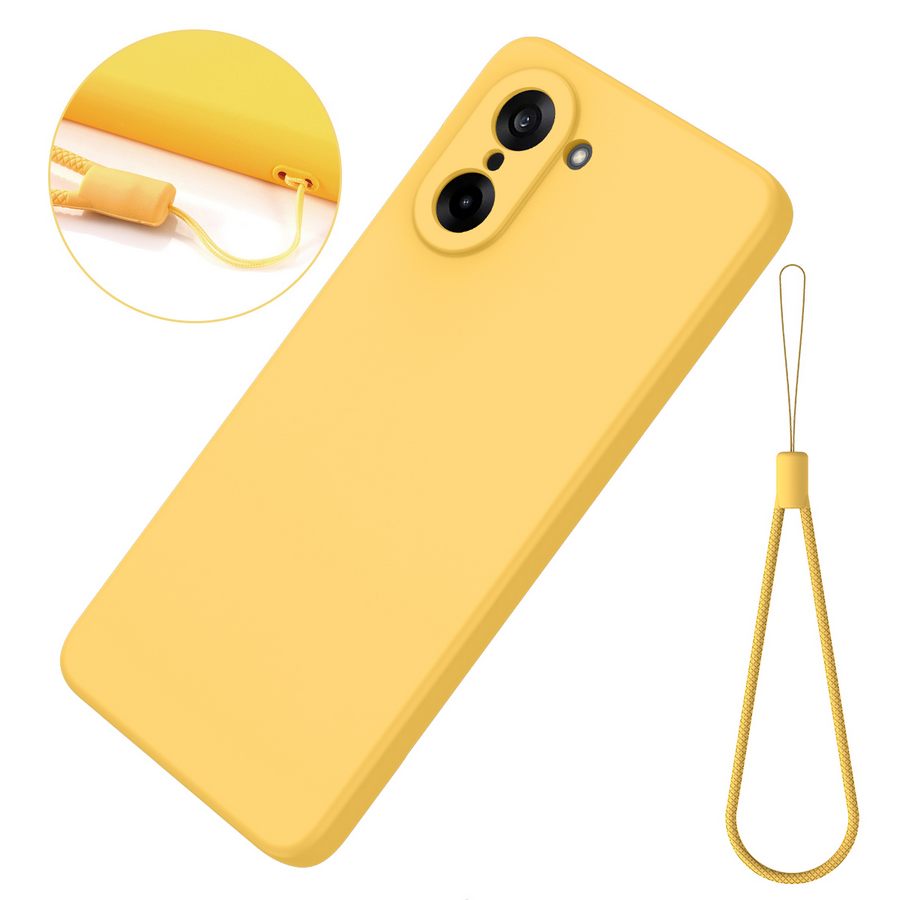 Iloisen värinen, elastisesta materiaalista tehty keltainen takakuori piristää OnePlus Nord CE5 5G älypuhelimen ilmettä ja suojaa sitä rikkoutumiselta.