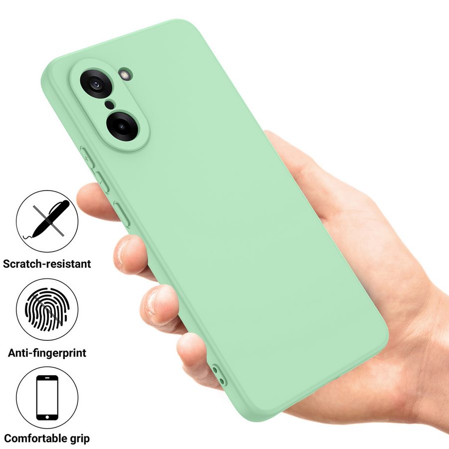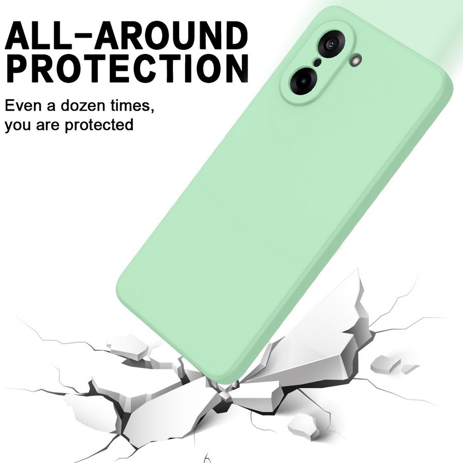 Ihastuttavan vaaleasävyisen vihreä, särkymiseltä suojaava takakuori OnePlus Nord CE5 5G älypuhelimelle on kestävä ja käytössä kevyt.