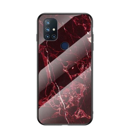 Punaisten sävyjen ja marmorikuvioiden yhdistelmä tuo OnePlus Nord N10 5G puhelimelle näyttävän ulkoasun ja kuori suojaa vaurioilta.