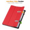 Ohuen mallinen kotelo pitää tabletin koon maltillisena ja se mahtuu mukavasti laukkuun ja matkaan mukaan.