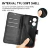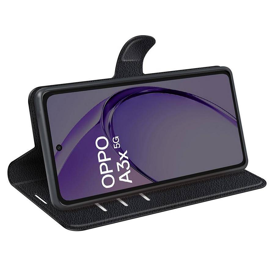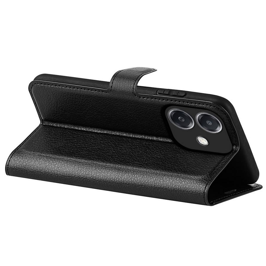 Kauttaaltaan särkymiseltä suojaava klassisen musta lompakkokotelo Oppo A40 -älypuhelimelle on käytännöllinen ja napakka malli.