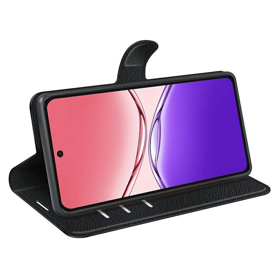 Oppo A5 Pro 5G -älypuhelimelle rikkoutumiselta suojaava, käytännöllinen ja aina edustavan mustan värinen lompakkokotelo.