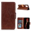 Napakan kestävä nahkakotelo suojaamaan Samsung Galaxy A02s puhelinta vaurioilta ja vahingoilta, hieno pehmeän ruskea värisävy.