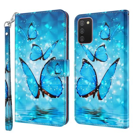 Veden yllä lentelevät perhoset ihanan heleässä sinisessä kotelossa, jolla saat suojattua Samsung Galaxy A03s puhelimen siihen kohdistuvilta osumilta.