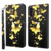 Perhosparven somistama tummapintainen lompakkokotelo, joka suojaa Samsung Galaxy A04s puhelimen särkymiseltä.