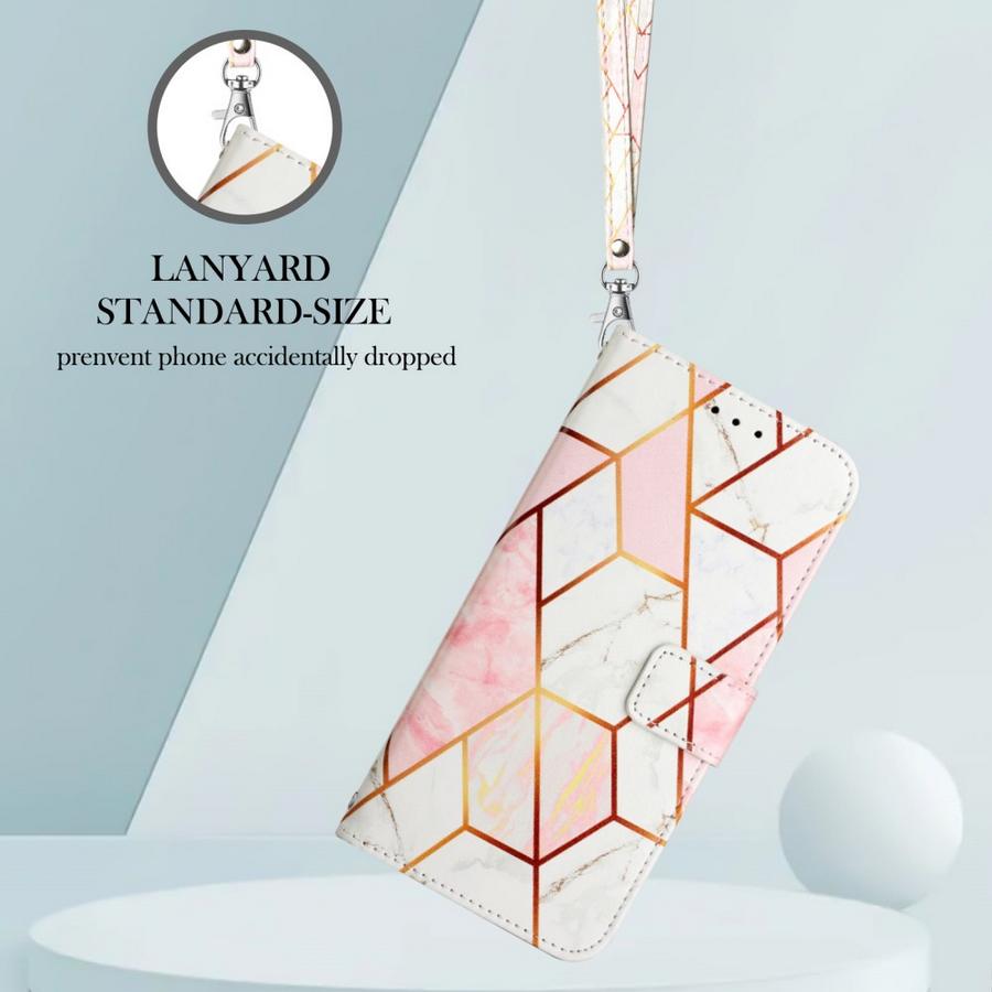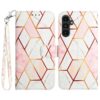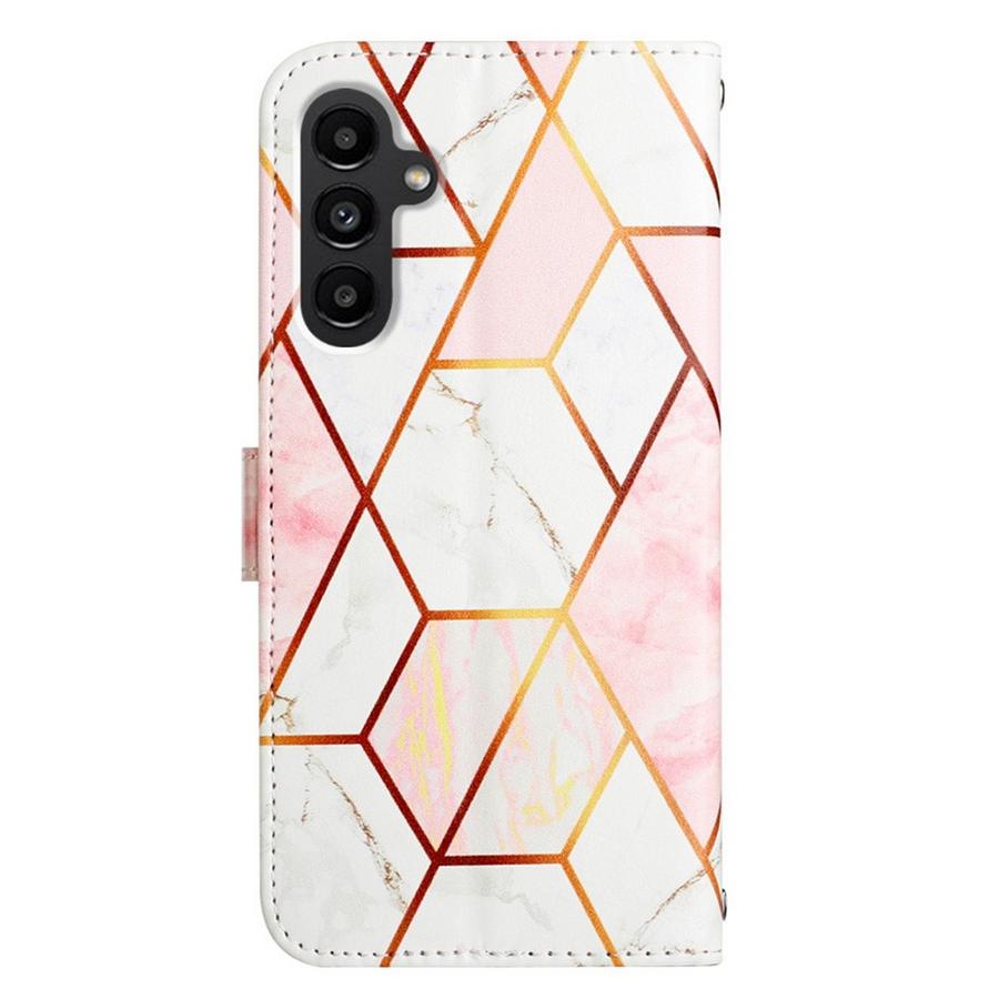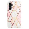 Samsung Galaxy A05s -puhelimelle suunniteltu kotelo on koristeltu graafisilla muodoilla ja vaaleasävyisillä marmoripinnoilla.