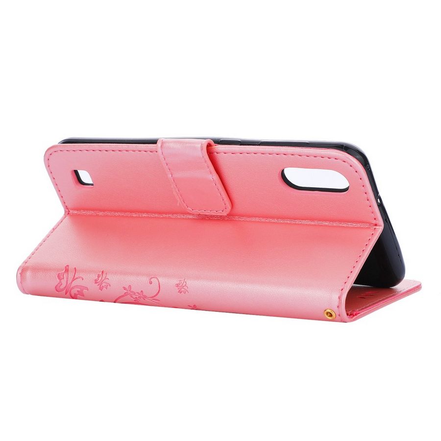 Vaaleanpunaisella lompakko mallisella kotelolla annat Samsung Galaxy A10 puhelimelle erinomaisen suojan putoamisen aiheuttamia vaurioita vastaan.