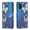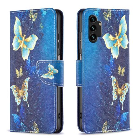 Samsung Galaxy A13 puhelimen suojaamiseen sopiva kotelo, jonka kauniissa sinisissä kansissa liitävät perhoset.