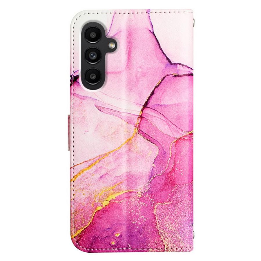 Samsung Galaxy A15 älypuhelinta rikkoutumiselta suojaava kotelo ihastuttavalla pinkin sävyjen marmoroimalla kuvioinnilla.